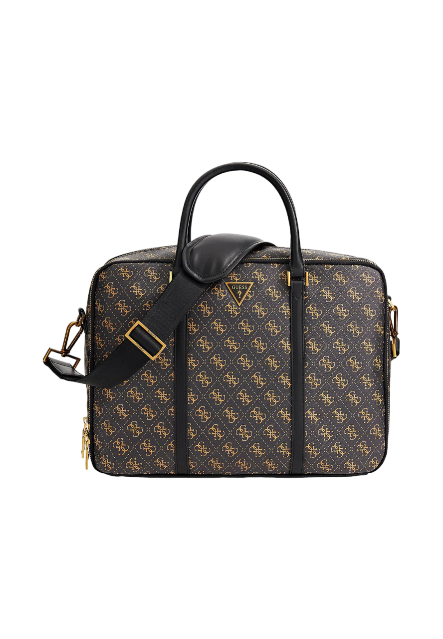 Guess, Vezzola, Polyurethane, Textile Briefcase, Computer, Brown/Ochre, 29 x 38 x 10 cm, For Men